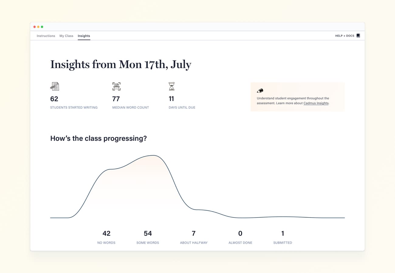 One of the best parts of using Cadmus for your assessments is the visibility you gain into student learning throughout the assessment process. Today we're launching the new Insights page, which gives your access to learning analytics within the Cadmus Teacher Environment — whenever you want.